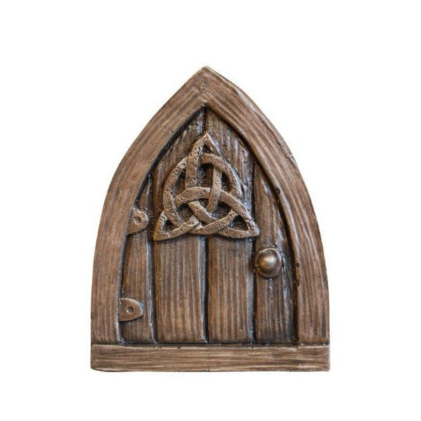 Small Celtic Fairy Door In Bronze. Size 2 1/2 inch high x 2 inch across Hand made in England. For the home or garden.